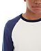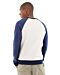 • Cream crewneck sweatshirt with navy sleeves/trim.